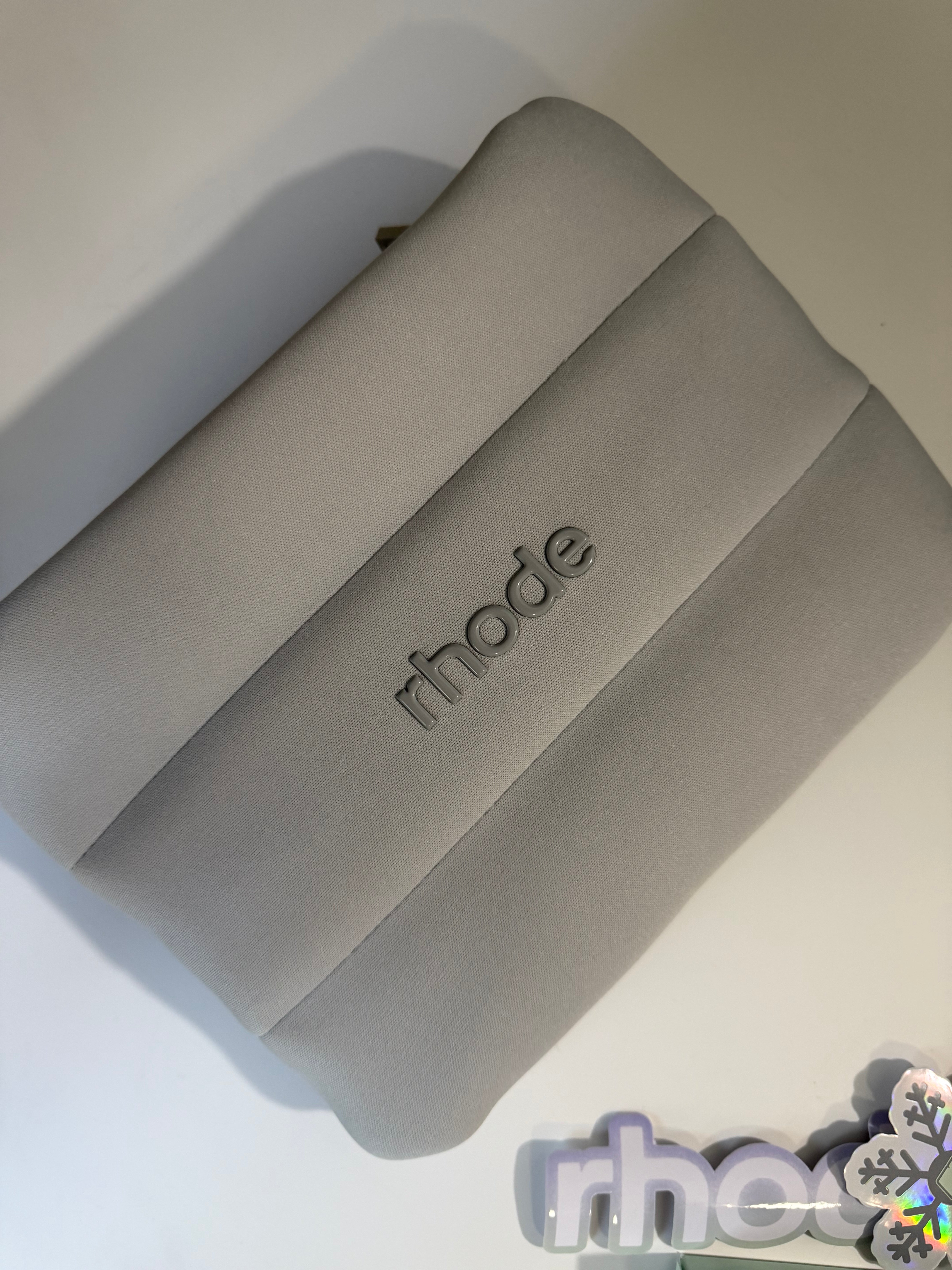 Qúe es: Nuestra emblemática bolsa de burbujas Rhode, ahora en tamaño mini. Perfecta para llevar en el bolso y de viaje, para tener tus productos Rhode favoritos a mano. Tiene capacidad para 2 o 3 productos esenciales grandes para el cuidado de la piel o 5 mini. Tamaño: 24 cm de largo x 19 cm de alto.